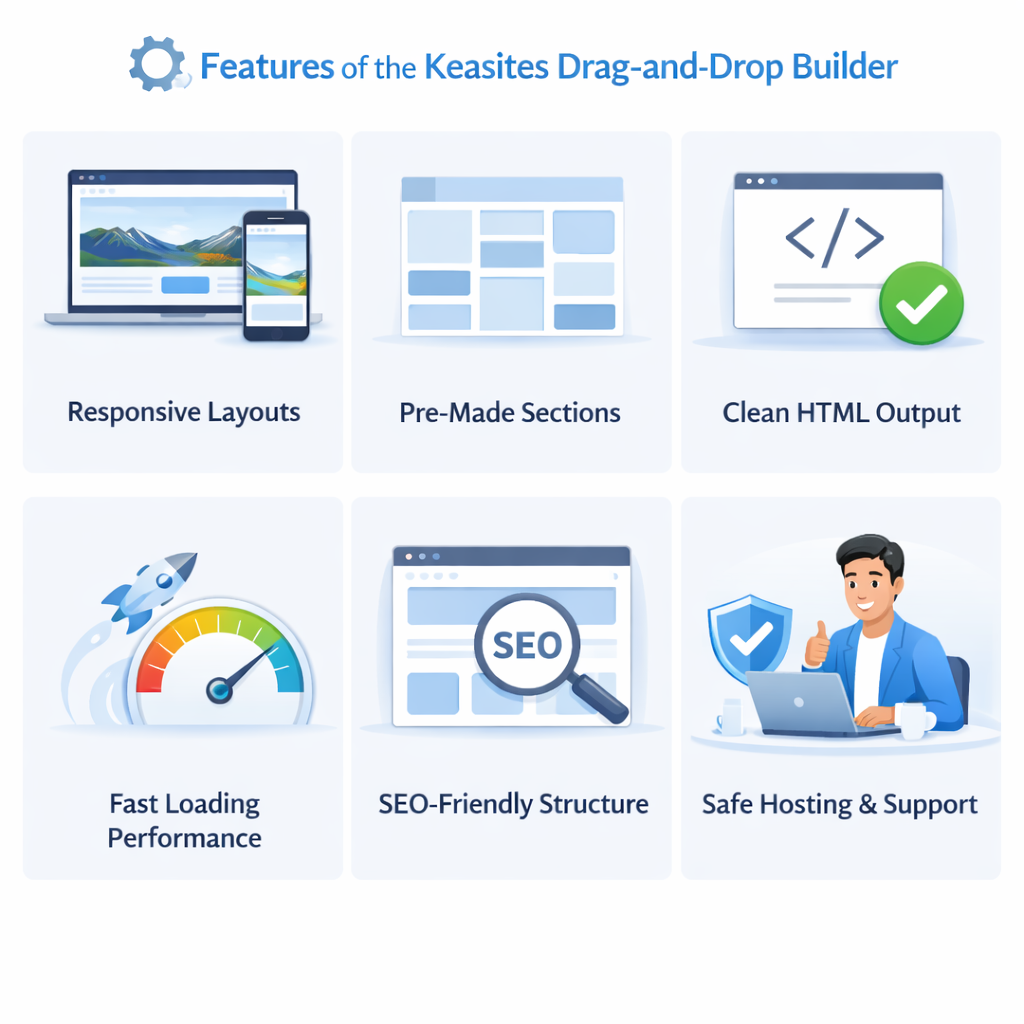 ⚙️ Features of the Keasites Drag‑and‑Drop Builder